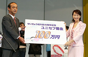 | ▲「京都まつり2003」の挨拶をされた高木副市長(せいきょうユニセフ活動のつどいに、ご来賓として列席していただきました。ありがとうございます。) |